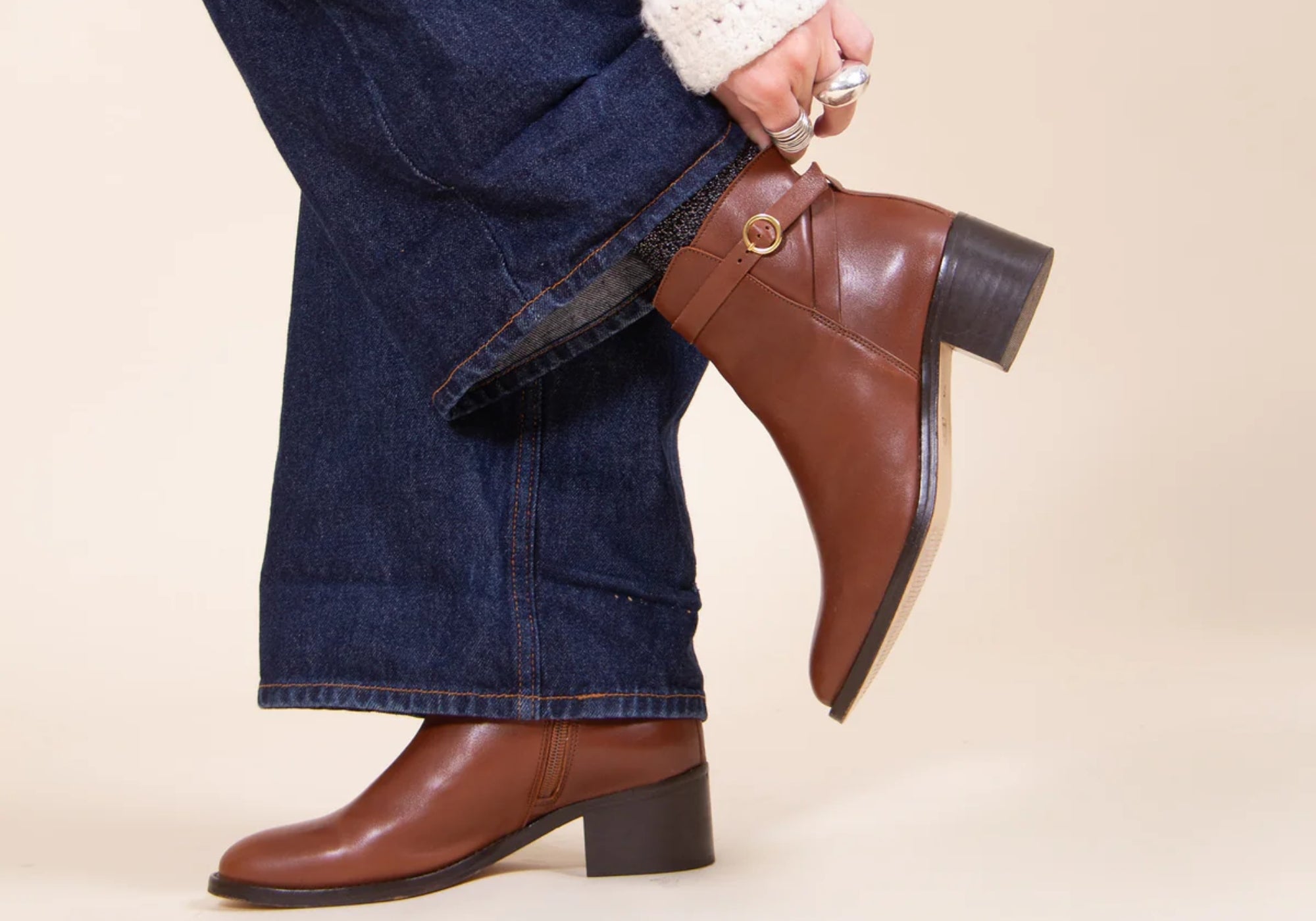 Bottines boucle cuir camel