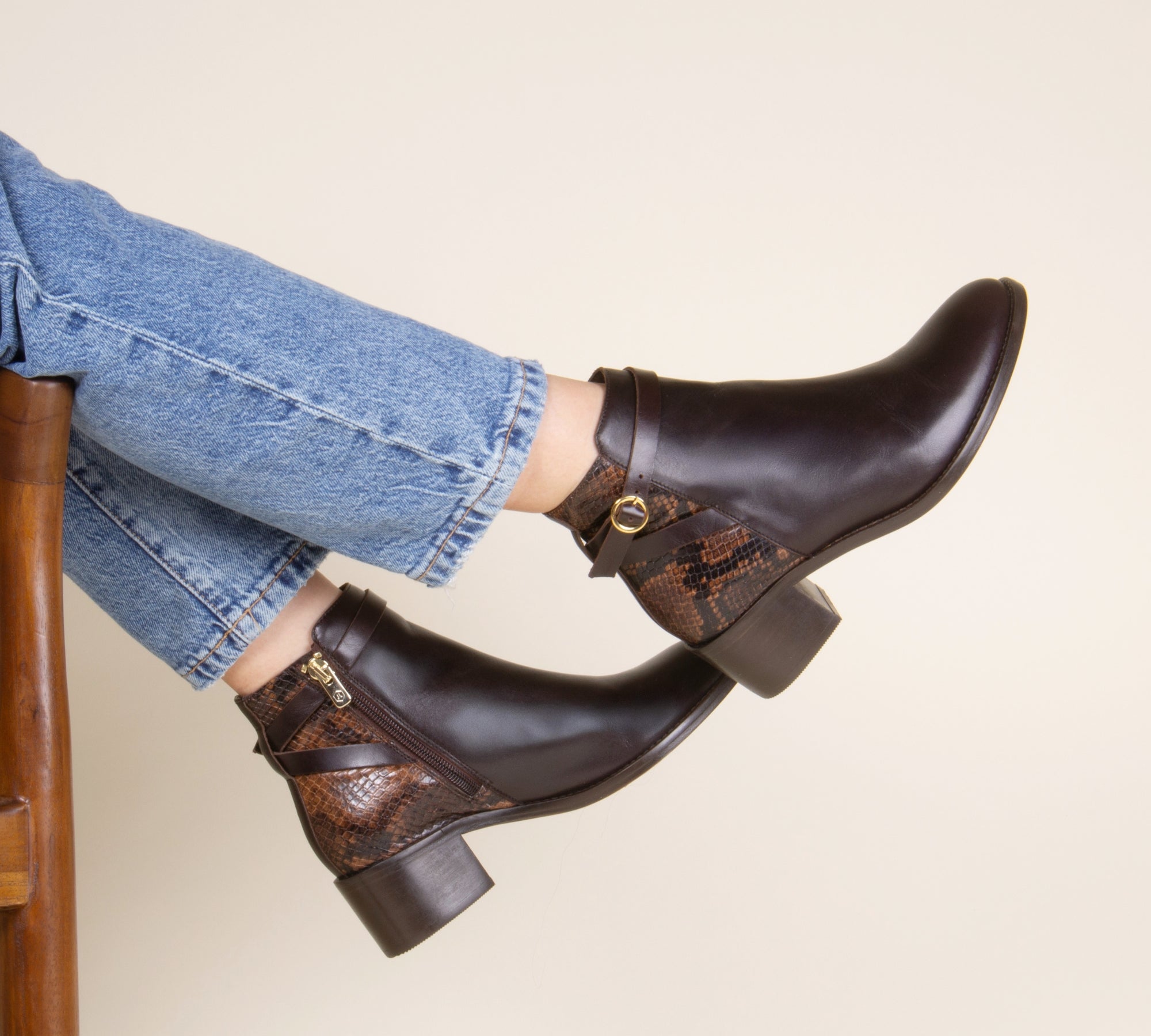 Bottines moyen talon cuir marron