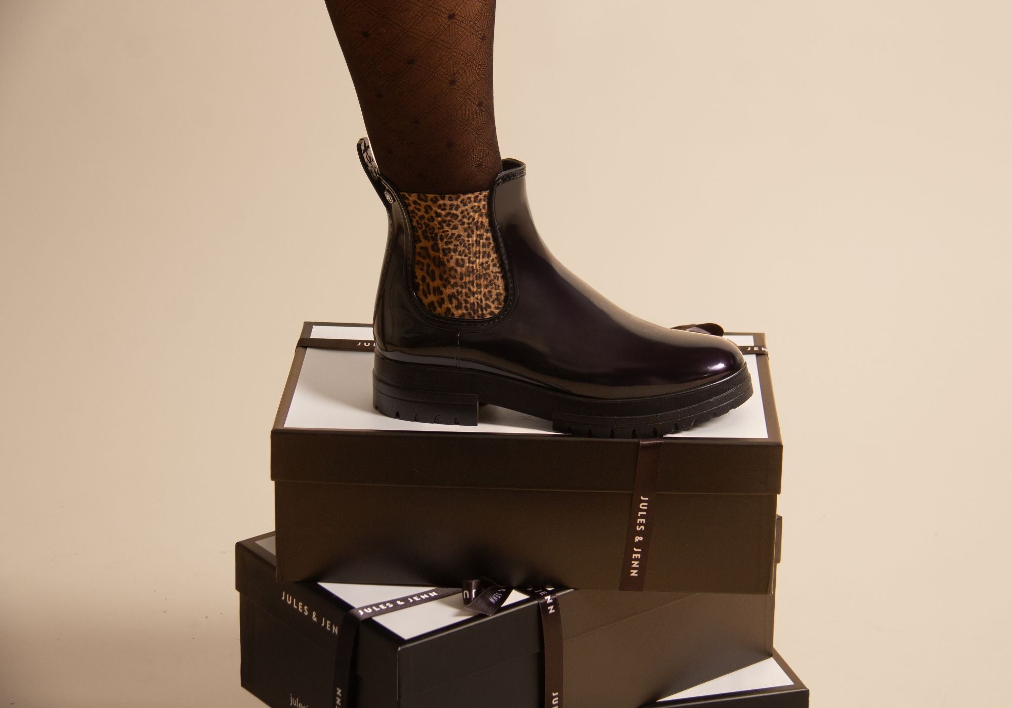 Bottines de pluie crantées noir léopard