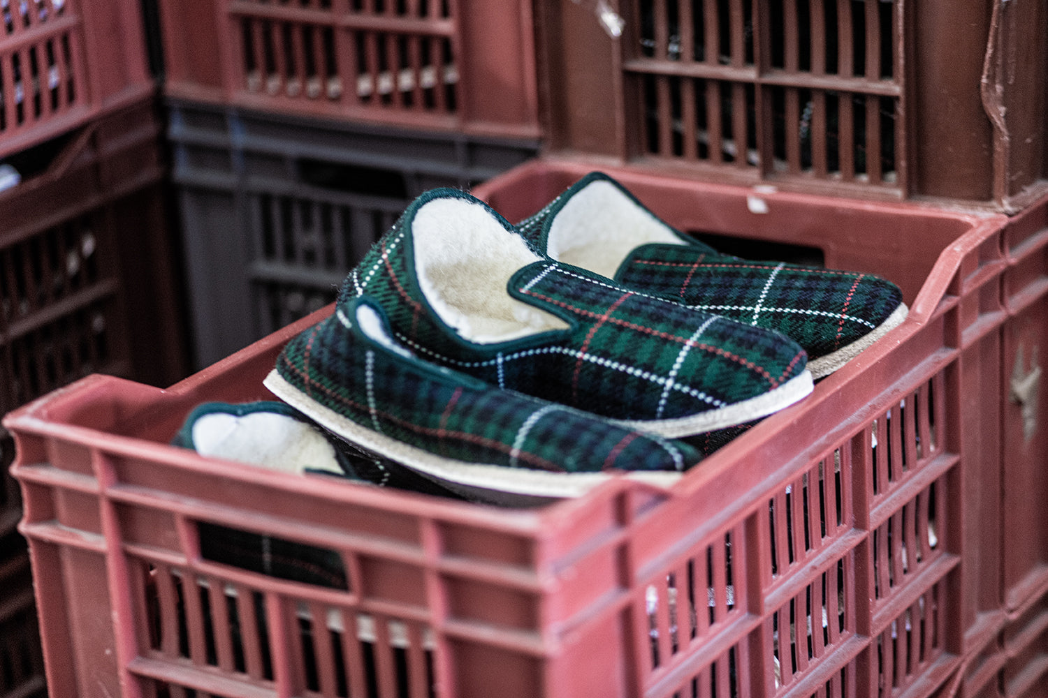 Apparues au XVII siècle, les charentaises sont à l’origine composées de chutes de tissu récupérées chez des tailleurs d’uniformes militaires français et sont utilisées pour doubler les sabots. Elles sont ensuite surnommées ‘les silencieuses’ car les valets de Louis XIV les utilisent pour se déplacer en intérieur sans faire de bruit. Les charentaises gagnent réellement en popularité en 1907, grâce au docteur Jeva, qui les démocratise en lançant des couleurs vives et les fameux motifs écossais.