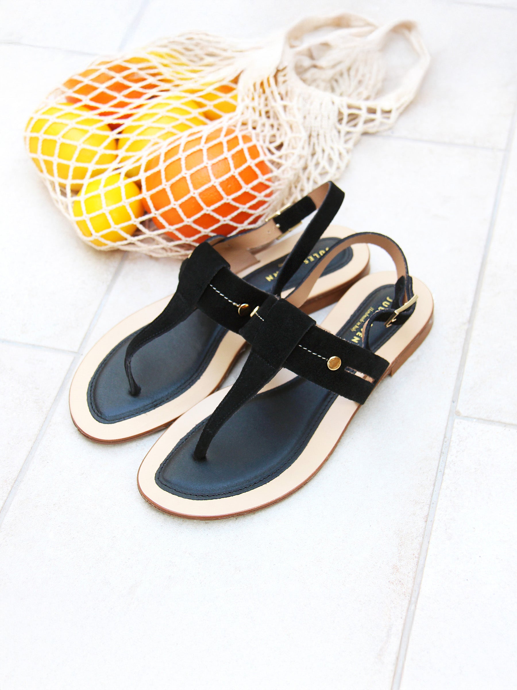 vue portée sandales tropeziennes daim noir jules jenn
