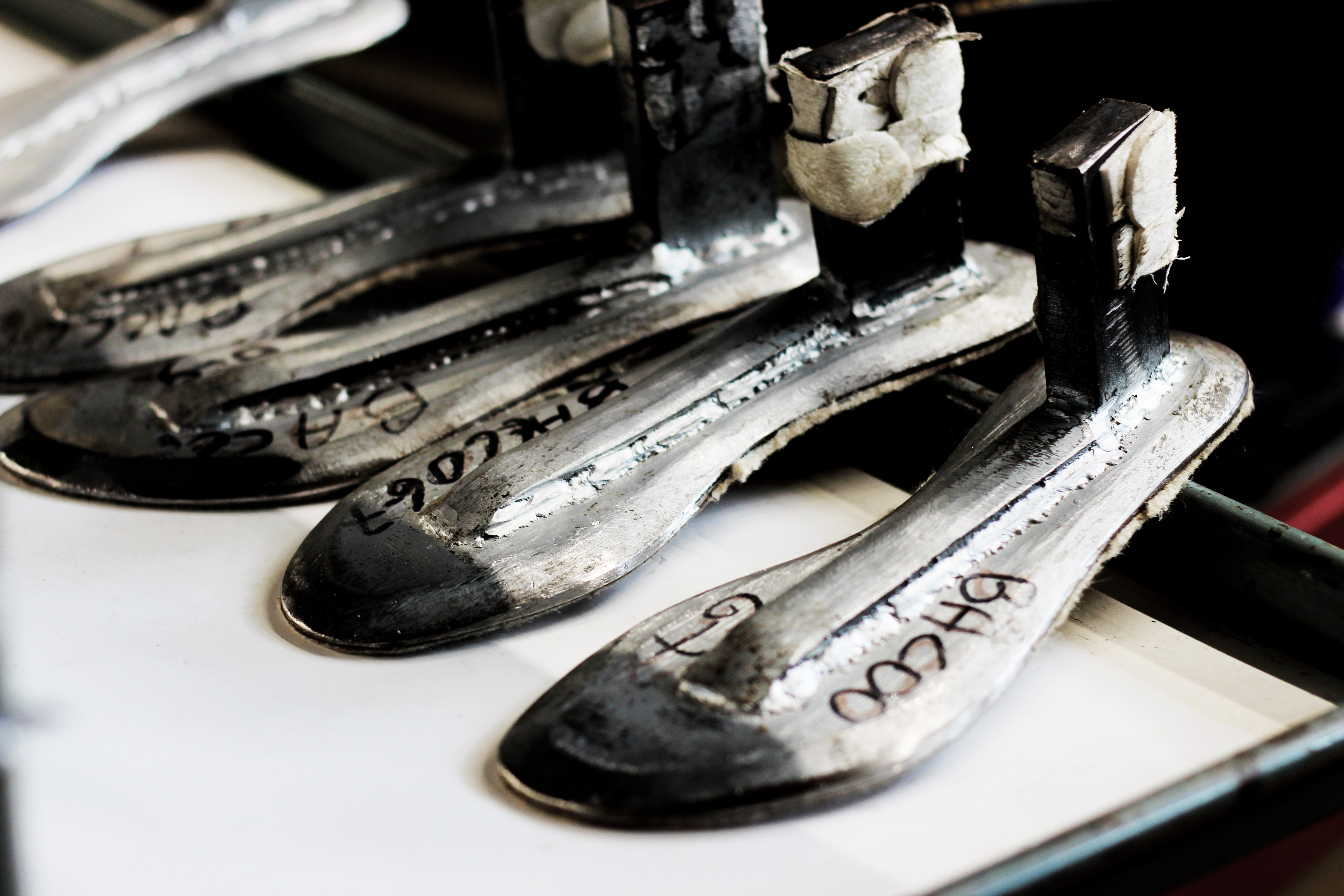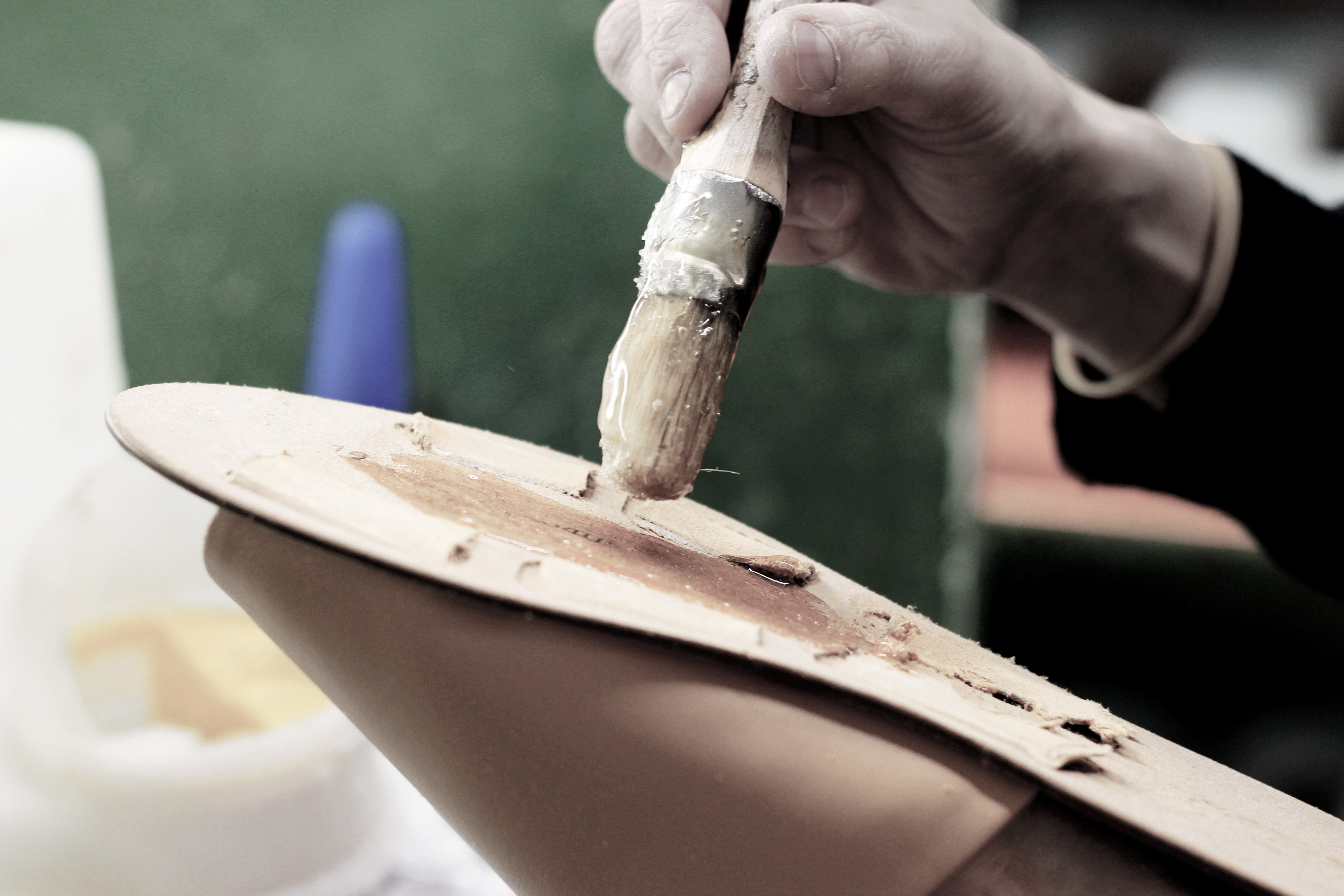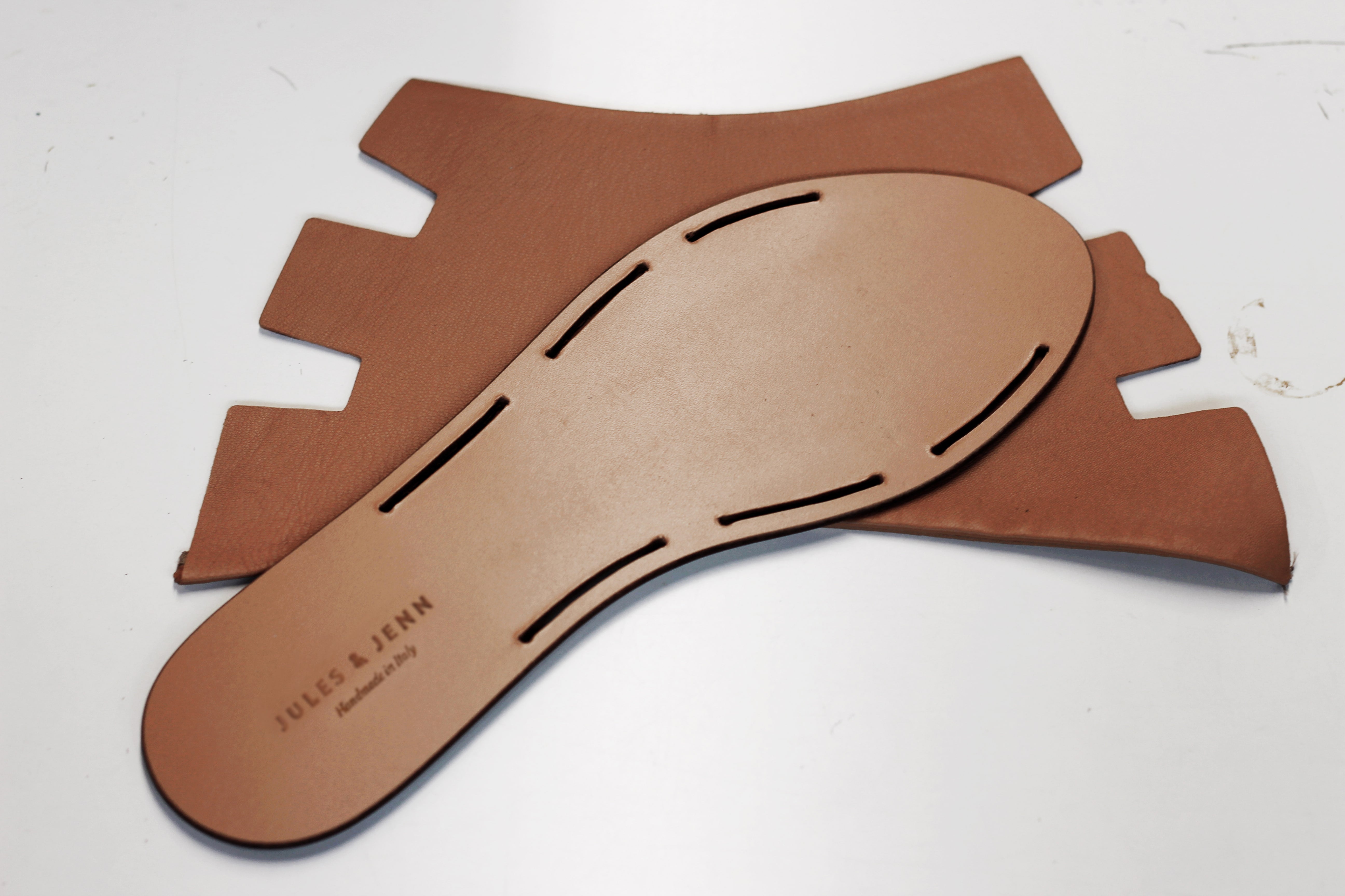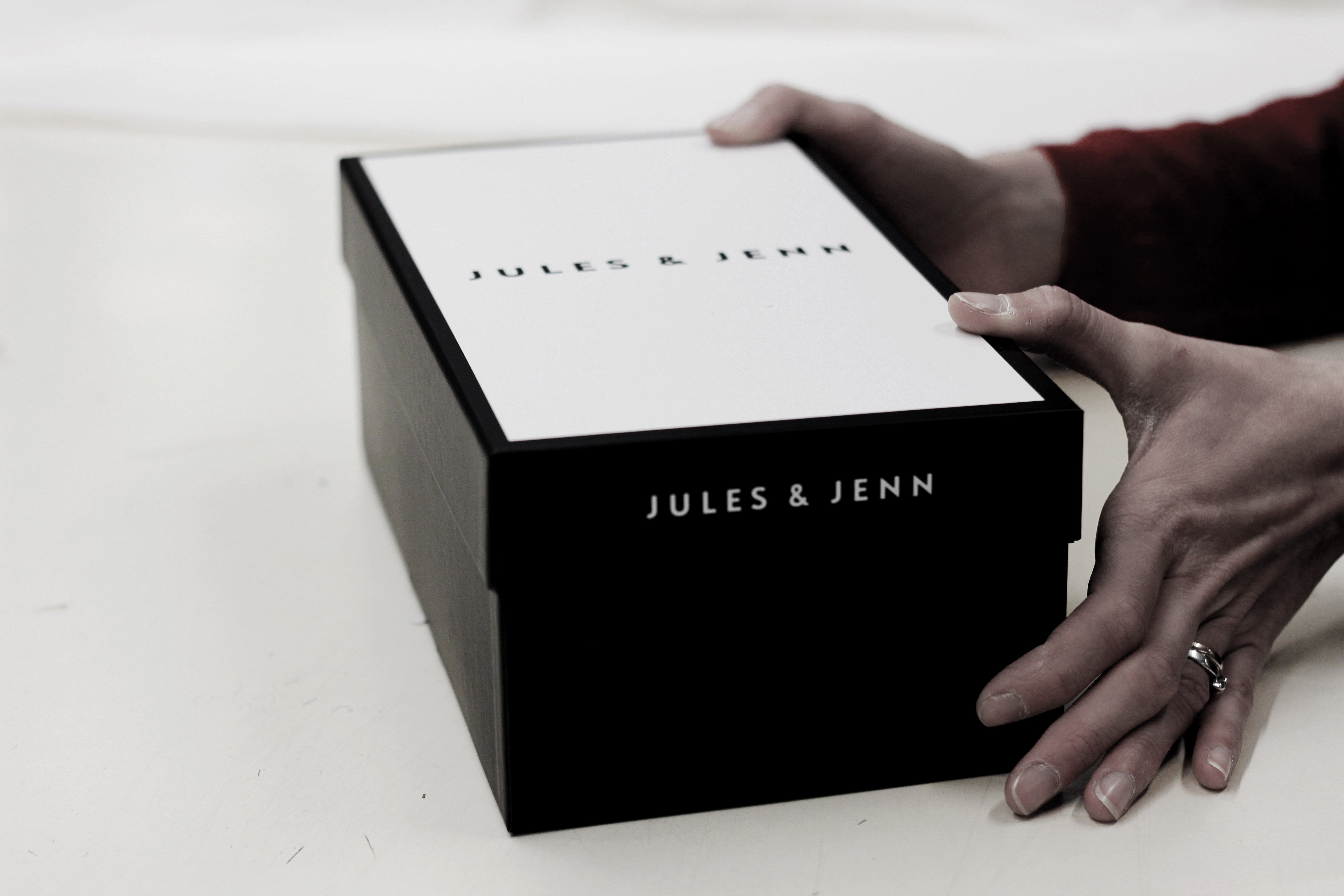 Sur la base du dessin, le modéliste réalise le patronnage des différentes parties qui vont composer la chaussure. Grâce à des emporte-pièces, le coupeur découpe, manuellement ou à l’aide d’une presse, les différentes parties du modèle dans la matière choisie. Les pièces doivent être soigneusement coupées pour éviter les défauts naturels du cuir. Les pièces composant la tige – le dessus de la chaussure – sont ensuite cousues entre elles. Les renforts et contreforts intérieurs sont cousus ou collés. Les décorations extérieures sont également ajoutées. La tige est ensuite posée sur un moule, variant selon la pointure, afin d’être fixée à la semelle interne. Selon le modèle, les opérations de couture, collage, ponçage et séchage se succèdent. Enfin, la semelle extérieure en cuir est fixée, par collage d’abord, parfois par couture. Après un temps de séchage, le montage de la chaussure est terminé. Le moule est alors retiré de la chaussure. La touche finale est la fixation de la première de propreté, qui est la semelle intérieure apparente, sur laquelle repose le pied. Enfin, la chaussure est bichonnée pour gommer les dernières petites imperfections. Parée de papier de soie, la chaussure repose dans sa boîte JULES & JENN. Reste à y glisser vos pieds.