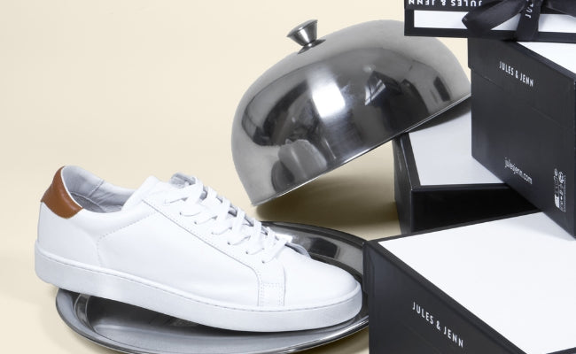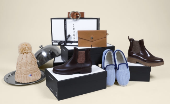 Sur la base du dessin, le modéliste réalise le patronnage des différentes parties qui vont composer la chaussure. Grâce à des emporte-pièces, le coupeur découpe, manuellement ou à l’aide d’une presse, les différentes parties du modèle dans la matière choisie. Les pièces doivent être soigneusement coupées pour éviter les défauts naturels du cuir. Les pièces composant la tige – le dessus de la chaussure – sont ensuite cousues entre elles. Les renforts et contreforts intérieurs sont cousus ou collés. La tige est ensuite posée sur un moule, variant selon la pointure, afin d’être fixée à la semelle interne. Selon le modèle, les opérations de couture, collage, ponçage et séchage se succèdent. Enfin, la semelle extérieure en cuir est fixée, par collage d’abord, parfois par couture. Après un temps de séchage, le montage de la chaussure est terminé. Le moule est alors retiré de la chaussure. La touche finale est la fixation de la première de propreté, qui est la semelle intérieure apparente, sur laquelle repose le pied. Enfin, la chaussure est bichonnée afin d’assurer une finition impeccable. Enrobée de papier de soie, la chaussure est délicatement posée dans sa boîte JULES & JENN. Il ne reste plus qu’à y glisser vos pieds.