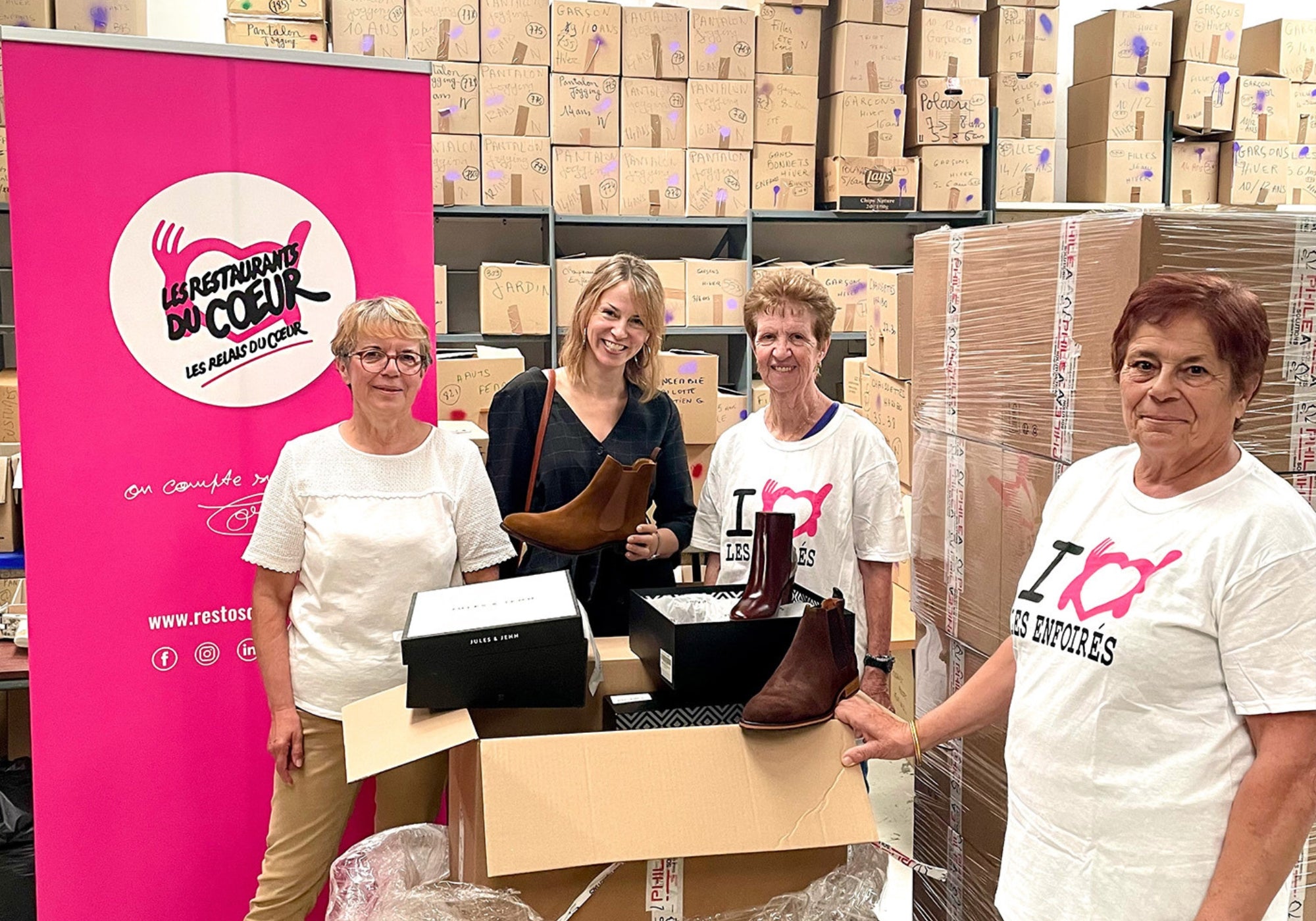 Dans une même optique de lutte contre la précarité en France, nous avons choisi le Vestiaire des Restaurants du cœur de l’Hérault pour deux donations exceptionnelles d'un total de 328 paires de chaussures femme et homme, pour une valeur de +40 000€.